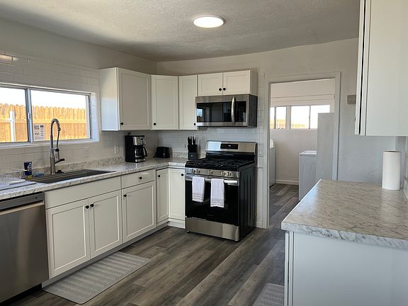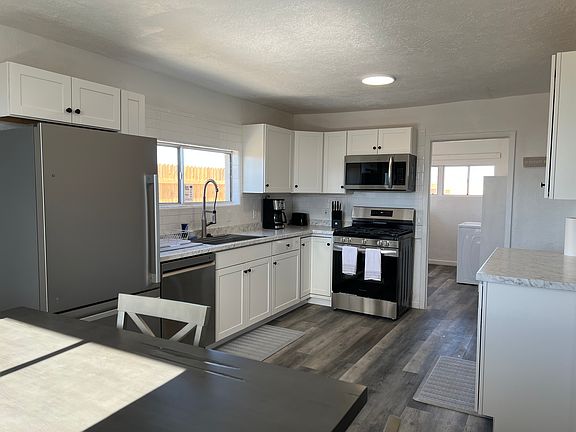 Beautifully remodeled spacious 2 bedroom 1 bathroom home with large fenced yard area. Home is rented turnkey furnished. Monthly rental amount includes ALL utilities including Starlink high speed internet and trash service. Conveniently located just a mile or so to downtown Willcox, yet peaceful and quite set on almost 5 acres. New heating & A/C, new kitchen, new bathroom, new stainless appliances including washer and dryer.