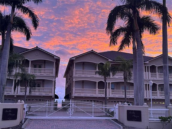 Rare Opportunity! Welcome to Bella Playa, a well-managed ten-home Planned Unit Development directly on the Gulf in Indian Shores. These are not condominiums; you own the land and the sand. Unit 5 is an exceptional end-unit townhouse, offering the perfect combination of luxury, comfort, and convenience right on the Gulf Coast. This appealing home features high ceilings and an array of high-end upgrades and premium finishes, making it a true standout in today’s market. Catch every sunset and the occasional dolphin from the west-facing balconies. Having the beach at your back door demands durable LVP flooring throughout, ensuring easy maintenance and lasting beauty. The home is wired for sound, bringing music and entertainment to every room. Brand new (2025), durable tile roof, along with new impact-rated French doors and sliding doors featuring “Turtle Glass” and Low-E coatings for enhanced energy efficiency and weather protection. HVAC equipped with an ultraviolet light system for cleaner, fresher air throughout the home. The private elevator provides effortless access between floors. Each spacious bedroom has its own en-suite bath. Elegant tray ceilings in the bedrooms add a touch of sophistication, and due to the end-unit advantage, an abundance of natural light creates an airy, open feel in every room. There's a laundry area tucked away on the same, second floor with the primary bedroom and bathroom for added convenience. Built in fire suppression sprinklers are tested annually. The generously-sized 3+ car garage has space for multiple vehicles and storage. Out the back door beckons a freshly-renourished, tranquil beach, providing a serene environment for beach walks, sunbathing, and water activities. Bella Playa has a geothermal heated pool & hot tub, just steps from your door. Enjoy peace of mind with a gated entry and underground utilities, ensuring safety and minimal disruptions. Landscaping is currently undergoing a complete refresh. The HOA Fee takes care of: water; sewer; trash; common area and pool maintenance and common area electricity. The home is located at the intersection of Park and Gulf Blvds, making it convenient to local restaurants, shops and entertainment, like John's Pass (10 min) and Seminole City Center (7 min). It's a 30 minute drive to St Pete/Clearwater airport and 35-45 minutes to Tampa International. With limited turnover in this sought-after community, an opportunity like this one doesn’t come around often. Don’t miss your chance to own a piece of paradise—schedule a showing today and experience this incredible beachside home!