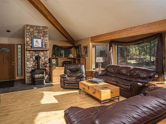 Private & secluded home, yet close to town. All new kitchen appliances. Lined pond for swimming & water fun w/pool filter system & water feature. Passive solar heat sink part of heating system. Great room affords easy family living. Great natural light from large windows & doors. Enjoy the treed surrounding, pond & water feature. Huge family rec room w/plenty of built-in storage cabinets & counters. 5 bedrooms (2 in main level & 3 on 2nd floor). Small barn with 2 stalls, tack room, shop area & storage room.