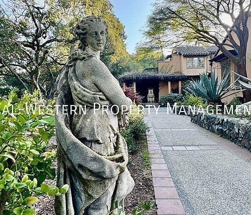 Nestled in an exclusive and private enclave, this Los Gatos rental bordering Monte Sereno epitomizes luxury living with its unique blend of Mediterranean-inspired architecture and Italian design. Surrounded by beautiful landscape, the main house, featuring two bedrooms and three-and-a-half baths, offers an expansive layout adorned with a library, loft/home office and solarium for an elevated living experience. The primary bedroom features an Italian fresco ceiling, and a window nook overlooking the private patio and fountain. The two bedrooms feature air conditioning for the hot summer months.