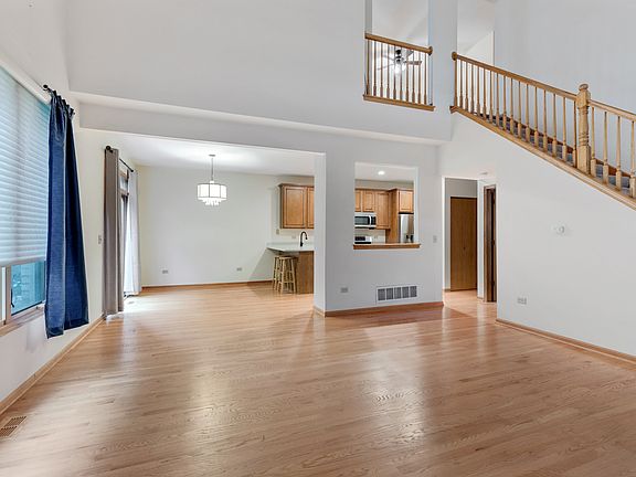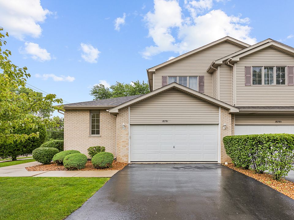 Fantastic 3 bedroom (plus loft) 2.5 bath, end unit townhouse in excellent location of Mokena! Features include much desired main level primary bedroom with elevated ceiling and (3) panel window! Renovated primary bath with custom raised vanity with granite counters, dual sinks, new ceramic tile floor, separate 5 foot shower and Soaker tub! Dramatic entry into the living room with soaring two story ceiling, hardwood floor, fireplace and (3) panel window! Excellent kitchen, corian type counters, maple cabinets, stainless steel appliances including oven range, microwave, refrigerator & dishwasher! Beautiful staircase leads to the upper-level loft, two additional spacious bedrooms and full bath! bedroom, Main level powder room with pedestal sink! Main level laundry room! Full basement (which has recessed lighting and hvac vents are run)! Attached 2 car garage! Beautifully seasoned tree lined yard and more! Slider door out to the patio concrete patio backs to a tree lined yard. Many newer items.. Roof 2020! Front door 2022! Central air 2020! Dishwasher 2023! Entire primary bath renovation 2019!