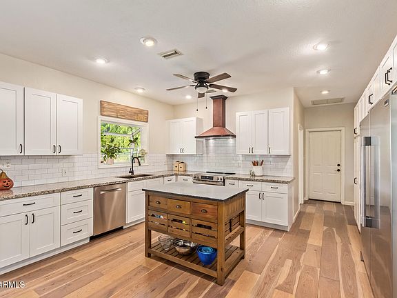 This beautifully updated home sits on an acre lot with no HOA and endless potential! Featuring newer flooring throughout, fresh baseboards, and updated fixtures, this home blends modern comfort with rural charm. The spacious kitchen boasts a stunning copper sink and matching hood and commercial-grade refrigerator. You'll love the thoughtful details, from the drop zone off the 3-car garage with durable polyurea flooring to the convenient half bath with exterior access, perfect for outdoor gatherings. The finished basement offers a kitchenette, ideal for guests or multigenerational living. Major updates include newer water heaters, as well as upgraded plumbing and electrical systems and the roof was replaced in 2023. The primary suite has its own private exit to the outdoors, where you'll find a variety of fruit treespomegranate, lemon, fig, apple, mulberry, lime, and meringa, plus grapevines. This move-in-ready horse property combines function, flexibility, and freedom in one exceptional package.