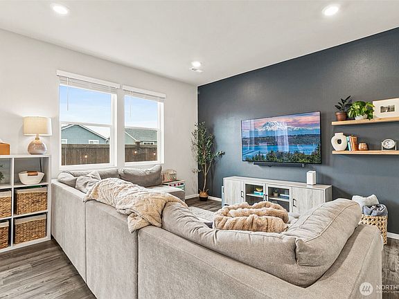 Situated in the newly constructed Rainier Ridge community, this 3-bedroom, 2.5-bath home offers the perfect blend of space, function, and location. The open-concept floor plan flows easily for daily living, while the upstairs primary suite provides a private escape with a walk-in closet and en-suite bath. Bonus room at the top of the stairs for additional functionality. From the upper level, enjoy sweeping views of Mt. Rainier. Fenced yard is ready for pets and entertaining. Just minutes from parks and recreation, and within a top-rated school district, this home is designed for convenience, comfort, and lasting memories.
