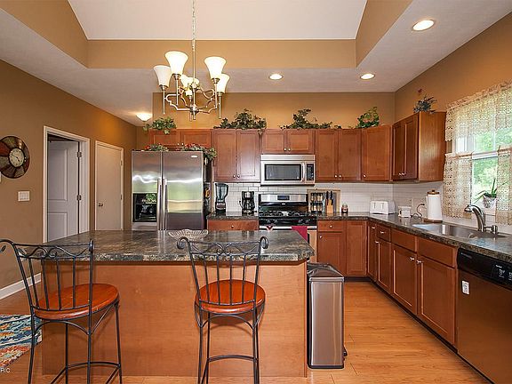 Pennfield Condo. Rare gem in premier location in a 2 unit building. Many custom features included: 9' ceilings on both main and lower level. Vaulted ceiling on main as well. Some wood flooring, maple cabinets with tile back splash. Island with snack bar, stainless steel appliances, white trim & 2 panel doors, 2 french doors, one off living area and 1 off master bedroom to large deck. 3 full bathrooms, one with a tub and 2 with huge showers for easy access. Main floor laundry. Basement finished with 2 large windows in the bedroom and recroom. Low Pennfield taxes with no city income tax. This place is sharp!(HOA includes garbage, lawn, snow, exterior maintenance. Water/Sewer is owner's responsibility.)
