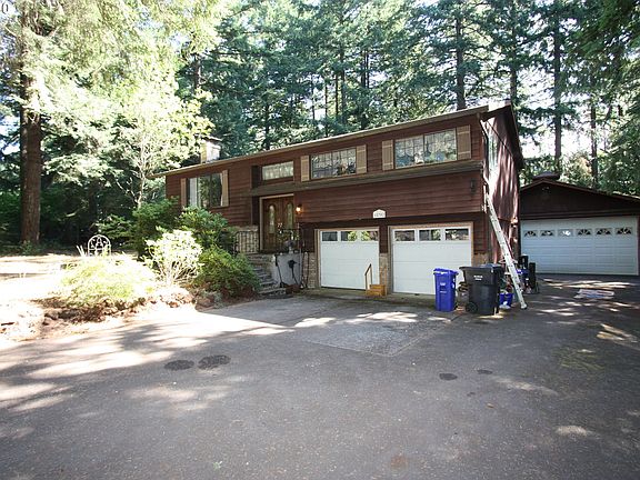 Amazing hideaway house on over an acre of trees with peaceful privacy! Nicely updated kitchen with stainless steel appliances. large family room on lower level that allows good separation from the main level. Massive deck off the master bedroom and dining room overlooking a park like treed back yard displaying beautiful serenity. The 31'x 24' shop has double and single garage doors and sink. Plenty of parking for many RVs . Items in the shop other than the car can be purchased from the sellers.