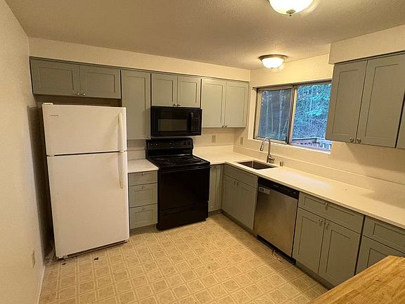 Nice fenced back yard with trees. 4 bdrms, 1.5ba, split level, nice little view out on back deck. Hard surface floor for easy cleaning! Near Jenkins Creek Park and grade school is 3-min walk away. Appx 1400sqft total, 2-car attached garage. Close to great shopping centers. Newly re-modeled kitchen and new paint inside. Newer roof, heating system/furnace, dishwasher, and refrigerator. Washer and Dryer included. Must see inside of the house first before applying. All viewings are to be scheduled and confirmed by the owner.