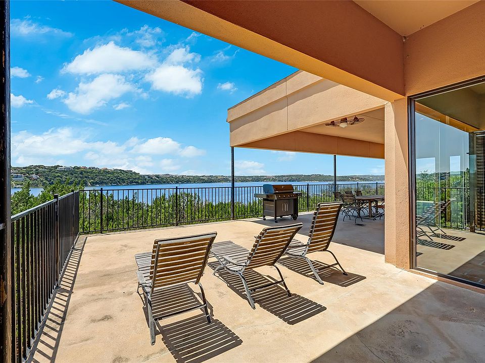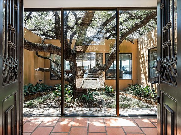 Discover a one-of-a-kind residence that blends striking architectural design with the serene beauty of Lake Travis. This 4-bedroom, 3-bathroom home is thoughtfully crafted around a central atrium, where a mature tree stands as the living centerpiece, bringing nature indoors and filling the home with light, character, and tranquility. The expansive main living room boasts walls of glass framing sweeping lake views, Saltillo tile floors, and seamless indoor-outdoor flow to a large deck, perfect for entertaining or taking in Hill Country sunsets. A second living space provides flexibility for a game room, media lounge, or private retreat, while spacious bedrooms and timeless craftsmanship add comfort and functionality throughout. Outdoors, the generous deck overlooks deep water and connects to a private boat dock, offering endless opportunities for lakeside living. Nestled in the golf cart community of Point Venture, residents enjoy a lifestyle like no other, complete with a 9-hole golf course, a private lakefront park with boat ramp, pool, clubhouse, floating restaurant, and the welcoming spirit of a true lakeside neighborhood. Whether a primary residence or a retreat, this property is more than a home, it’s an architectural statement, a rare connection to nature, and an invitation to experience the best of Lake Travis living.