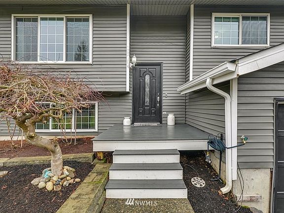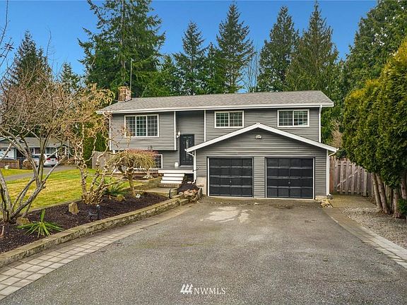The WOW factor is in full force on this Bothell home situated on a cul-de-sac in the Tambark Trails neighborhood. Remodeled with a great room style kitchen, new lighting, flooring, paint & brand-new roof! Primary bedroom has a quarter bath & slider to the large deck. Downstairs boasts a rec room, utility room and 4rth bedroom with its own front room + 3/4 bath. Perfect for extended living or MIL w/separate entrance. The huge fully fenced, private back yard redone in the last few years and made to be a park like paradise that is perfect for entertaining or a quiet night around the fire pit. Don't miss the outbuilding that could be a home office, studio or so many possibilities. Close to 405, Mill Creek TC & all amenities + Northshore SD.