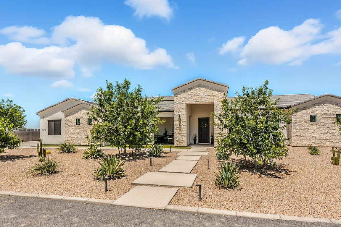 Welcome to your private desert retreat, blending modern design with resort-style living. The backyard feels like your own luxury getaway—pizza oven, fireplace, bar seating, sink, firepit,huge hot tub, pool with water feature and alumawood shade,synthetic grass, landscape lighting, raised garden beds, outdoor shower, and putting green. Three fireplaces (front porch, living ...
