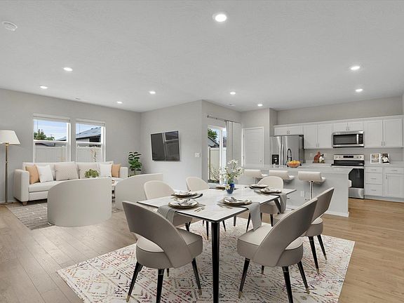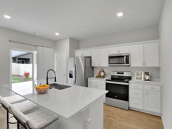 Embrace refined living in this exceptional 2023 new-construction home, ideally located just minutes from the River District, Centennial Trail, and breathtaking mountain and river scenery. This 3-bed, 2-bath residence offers an elegant open-concept design, elevated by luxury plank flooring, quartz countertops, and designer finishes throughout. The sunlit kitchen flows seamlessly into stylish living and dining areas—perfect for upscale entertaining or quiet evenings at home. The primary suite is a serene retreat, featuring a spacious walk-in closet and a beautifully tiled walk-in shower. Step outside to a fully landscaped, fenced yard with sprinkler systems front and back, and lush sod ready to enjoy. Situated in a vibrant, fast-growing community with scenic parks, dining, and effortless access to I-90 and transit, this home offers the best of modern luxury and outdoor lifestyle. Don’t miss this rare opportunity—schedule your private tour today.