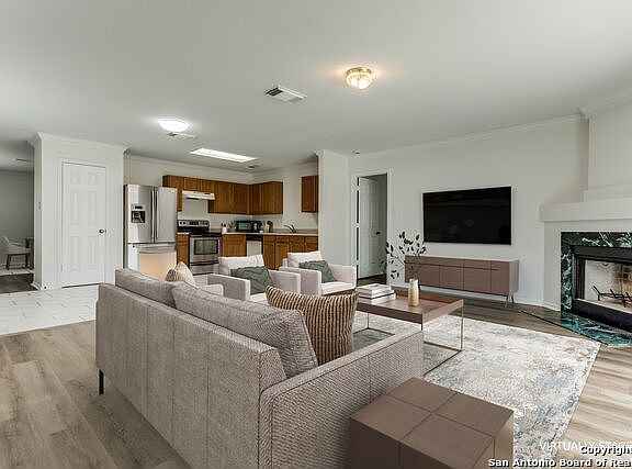 Located in a highly desirable community served by an award-winning school district with top-rated schools, this home offers both comfort and convenience. The spacious interior is filled with natural light thanks to large windows that create a bright and airy atmosphere. Enjoy the low-maintenance appeal of newly installed luxury vinyl flooring throughout - no carpet anywhere - and fresh paint that gives the home a crisp, modern look. Conveniently situated with easy access to Hwy 281, you'll be just minutes from excellent dining, shopping, and everyday essentials. Refrigerator, washer, and dryer convey-making this home move-in ready!