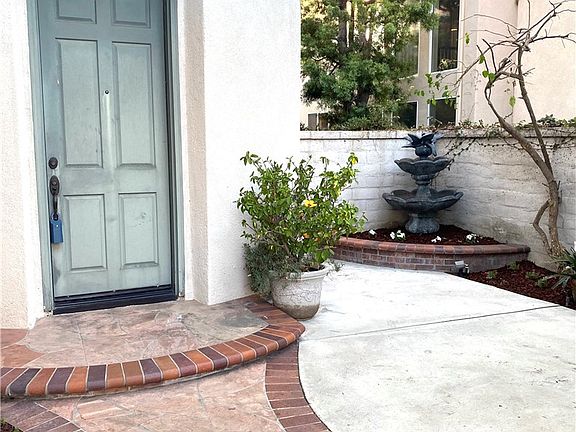 Relax in the landscaped front yard with a grass lawn and gated courtyard. The inviting backyard features a concrete patio with a wood cover.