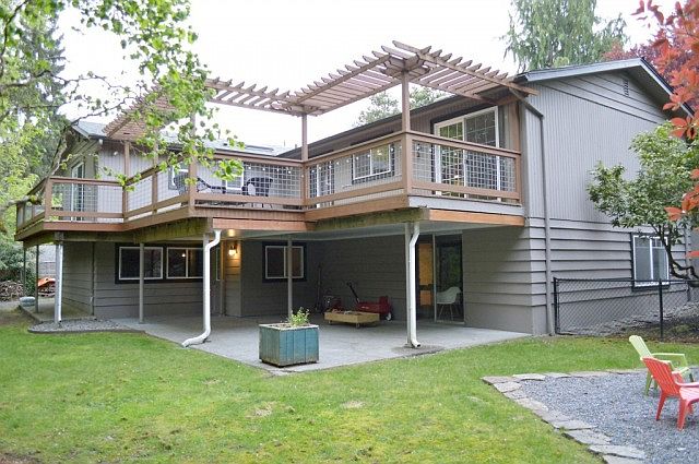 Private park like setting surrounds this updated 5 bedroom home. Quiet street, tons of light and mature landscaping. Backyard has been fully fenced. Features hardwood floors on main living area. Stainless steel appliances and crown molding. Efficient hybrid gas/heat pump w/AC. Home lives larger w/3 living areas, one area can be a mother in law suite. Huge entertaining sized deck w/ gutter system under decking. RV parking and wired for generator. Welcome home.