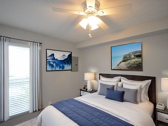 The bathroom in this apartment is equally as impressive as the rest of the space. It features a sleek and modern shower with tiled walls and floors, providing a luxurious spa-like experience. The nice vanity offers ample storage space and a stunning countertop, perfect for getting ready in the morning or winding down at night. With all of these amazing features, this bathroom is the perfect place to relax and unwind after a long day.