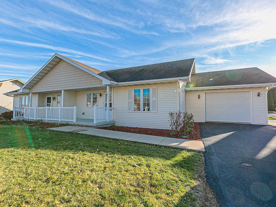 This lovely 2-bedroom, 1-bath ranch combines comfort with convenience. Step onto the welcoming front porch and into a bright, open concept living, dining, and kitchen area designed for effortless everyday living. Convenient first-floor laundry adds to the home’s accessibility and functionality. An attached 1 car garage offers protection from Wisconsin’s unpredictable weather, making every arrival and departure more comfortable. The easy-care yard provides just enough outdoor space without the upkeep. Ideally located close to shopping, great restaurants, and major highways, this home offers comfort, convenience, and low-maintenance living. Property is a zero lot line, not a condominium.