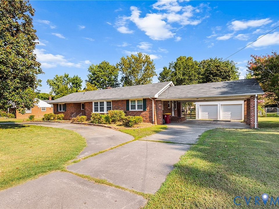 Helping You Find Home! This home is tucked away on the Prince George side of Petersburg, near the back gate of Ft Gregg-Adams and minutes from shopping and interstates, situated on a 1/2 acre lot! This roomy brick rancher has 3 bedrooms, 2 bathrooms, a formal living and dining room, family room and a sunroom. There is a 2 car carport, a 2 car detached garage, a circular driveway, fenced backyard, and patio...a perfect place for entertaining! Hardwood floors throughout (no carpet). Located minutes to the ALU gate of Fort Gregg-Adams, shopping and major highways.