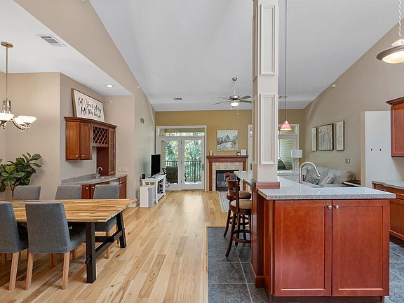 Easy, low maintenance, condo living located in central Davenport. This 2 bedroom/2 bath unit is located on the 3rd floor with elevator access. Upon walking into this updated, spacious unit, the natural light, hardwood floors, and vaulted ceilings with skylight, allow for functional, modern living spaces. The kitchen has stainless steel appliances, new gas stove and dishwasher, breakfast bar, and huge walk in pantry with floor to ceiling shelving! Coffee and wet bar and informal dining space allow for great entertaining areas too. The main living room boosts a gas fireplace with doors leading out to the private covered deck. The primary bedroom has high, vaulted ceilings, walk in closet with ample storage, and full ensuite. Laundry is included with the unit with front load washers conveniently located in the hallway closet. The unit has easy access to secure parking. This unit is stylish, functional, and ready for the next owner to enjoy living at Stone Gate Circle.