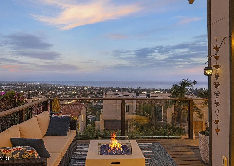 Unobstructed Ocean Views | Expanded Living Space | Ventura Heights Perched in the prestigious Ventura Heights neighborhood, this beautifully remodeled hillside home captures sweeping 180-degree views of the ocean, Channel Islands, pier, and mountains from nearly every angle. Thoughtfully expanded, the home now offers four bedrooms, an office, and three full bathrooms, including a stunning new lower level with a spacious bedroom, office, and full bath--ideal for multigenerational living, guests, or a private work-from-home retreat.Upstairs, the main level boasts a light-filled living room with vaulted, beamed ceilings, oak plank floors, and floor-to-ceiling windows that frame postcard-worthy sunsets. The primary suite features its own ocean-view deck, fireplace, and a spa-like bath with a soaking tub and oversized shower. Two additional bedrooms are connected by a cleverly designed Jack & Jill bath with dual vanities and privacy doors.Outdoor living is exceptional, with a beautifully landscaped backyard complete with a built-in BBQ, firepit, and view terrace, perfect for entertaining or unwinding. Off the living room, an additional outdoor kitchen with BBQ and refrigerator extends your hosting space, all while enjoying panoramic views from the front deck. Upgrades include a newer roof and HVAC. Nestled near the end of a quiet cul-de-sac among newly built homes, this residence combines timeless design, modern convenience, and unparalleled views in one of Ventura's most coveted hillside enclaves. Backyard also offers fruit trees including peach, dwarf avocado, fig and Santa Rosa plum in addition to the amazing views!
