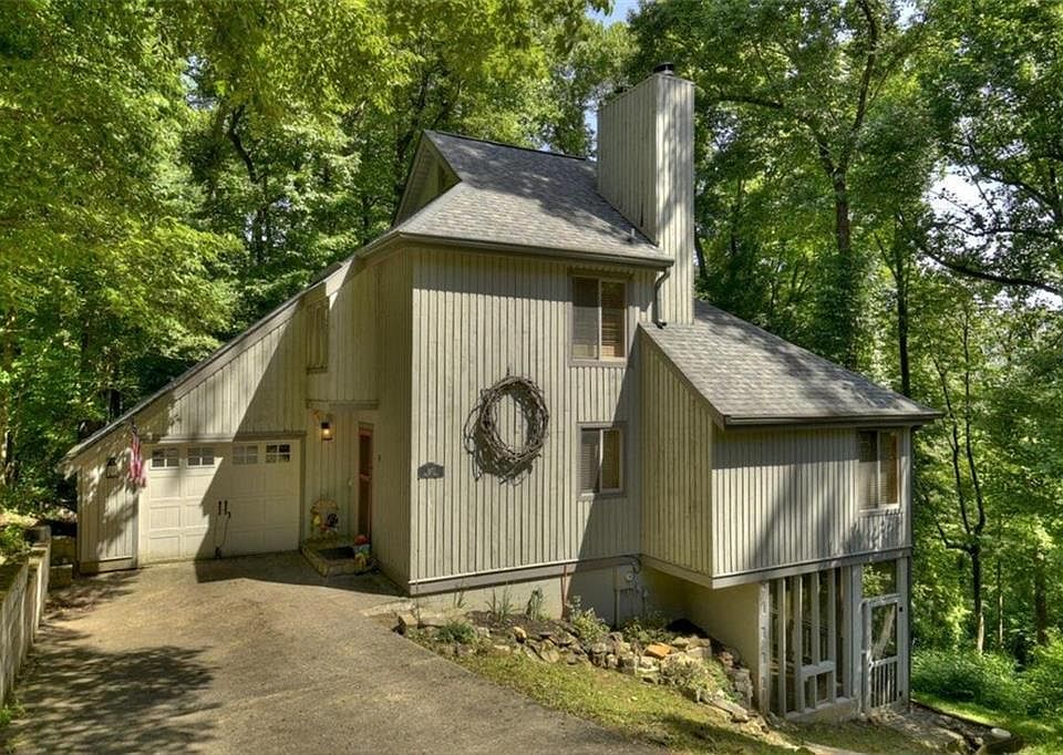 Extraordinary Mountain Home with Year Round Mountain View! Selling mostly furnished. You will be captivated by the unique features of this home including stunning stacked stone accents, gorgeous vaulted wood ceilings & 3 levels of living. Open floor plan with well appointed kitchen, 2 fireplaces w/gas logs, plus an energy efficient wood burning stove. Windows galore to enjoy the VIEWS and an abundance of natural light. You'll love relaxing & dining on large deck on the main level, it's so peaceful, all you hear are the birds. Main level BR has fireplace, also serves as nice den area. The upper level has 2 separate sleeping areas, plus a cool loft for older kids. Lower level features den w/fireplace, bed & bath, screened in porch & nice covered porch. 1 car garage. (Sleeps 8-10) Amenities: Gated security, public water, 4 private lakes, hiking trails, Olympic pool, clubhouse, tennis. 10 minutes from town.