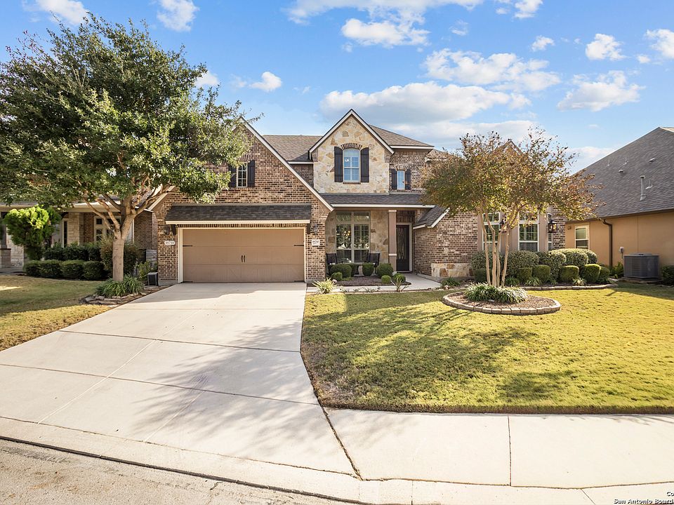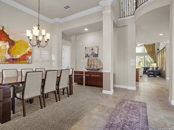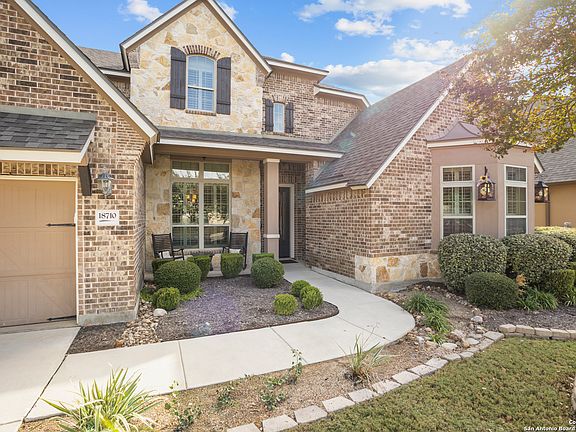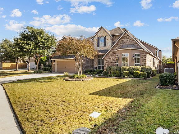Welcome to this beautifully appointed home in the highly desirable Rogers Ranch community in San Antonio. This spacious 4-bedroom residence offers an ideal blend of comfort, style, and functionality with an open-concept layout, tall ceilings, and abundant natural light throughout. The gourmet kitchen serves as the heart of the home, featuring expansive granite countertops, custom cabinetry, stainless steel appliances, and an oversized island perfect for gathering and entertaining. The living room is anchored by a cozy fireplace and flows seamlessly into the dining area and outdoor living spaces. The primary suite is a private retreat with a large walk-in closet, double vanities, and a separate soaking tub and walk-in shower. A dedicated office on the main level plus a versatile upstairs loft provide flexible spaces for work, play, or relaxation. Outdoors, enjoy a covered patio complete with an outdoor fireplace and a full outdoor kitchen, creating the perfect setting for year-round hosting. Located within the sought-after Rogers Ranch community, residents enjoy access to amenities such as a sparkling pool, sports courts, walking paths, and a prime location near top-rated schools, shopping, dining, and major highways.