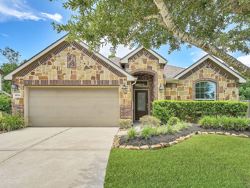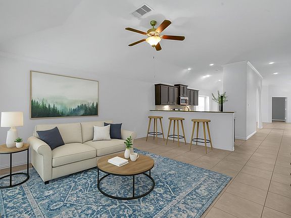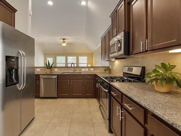 Welcome to this beautiful one-story home in the heart of Tavola, just walking distance to the scenic pond, trails, and amenities. This full masonry home features brick and stucco with a designer-selected interior paint palette. Inside, enjoy high ceilings, arched entryways, and recessed lighting throughout. The semi-open layout offers flow and function with defined yet connected spaces. The kitchen includes granite counters, ample cabinetry, and durable finishes- perfect for everyday living and entertaining. With four bedrooms, the split floor plan offers a private primary suite with a large walk-in closet and a bath featuring both shower and tub. Sitting on a rare ~9,400 sq ft cul-de-sac lot, you'll love the covered patio and the peaceful feel of this established neighborhood. Experience Tavola living at its best-schedule your tour today!