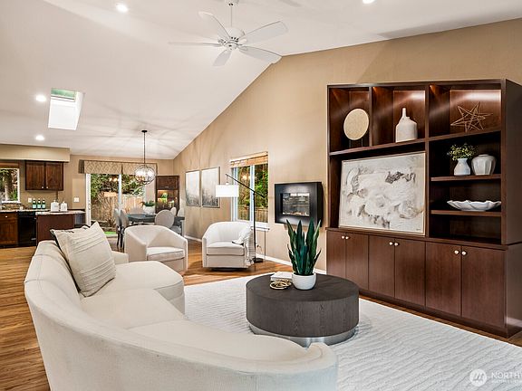 Discover your serene sanctuary in this meticulously updated rambler on a peaceful North Bothell cul-de-sac adjacent to a charming tot lot. Step inside to vaulted ceilings & spacious open-concept great room. Beautifully remodeled kitchen boasts modern finishes & a coveted walk-in pantry with motion-sensing lights. Custom built-ins throughout the home add a touch of charm. The primary suite features updated carpeting, a generously sized walk-in closet, access to the backyard, & a fully remodeled en-suite bath. Step outside to your private backyard oasis, a tranquil retreat with soothing sounds of a delightful pond, home to fancy goldfish. New AC, installed in 2024 - This well-maintained home is brimming with thoughtful details & hidden gems.