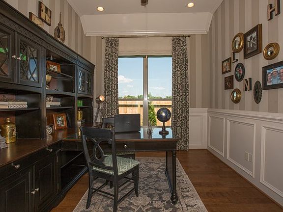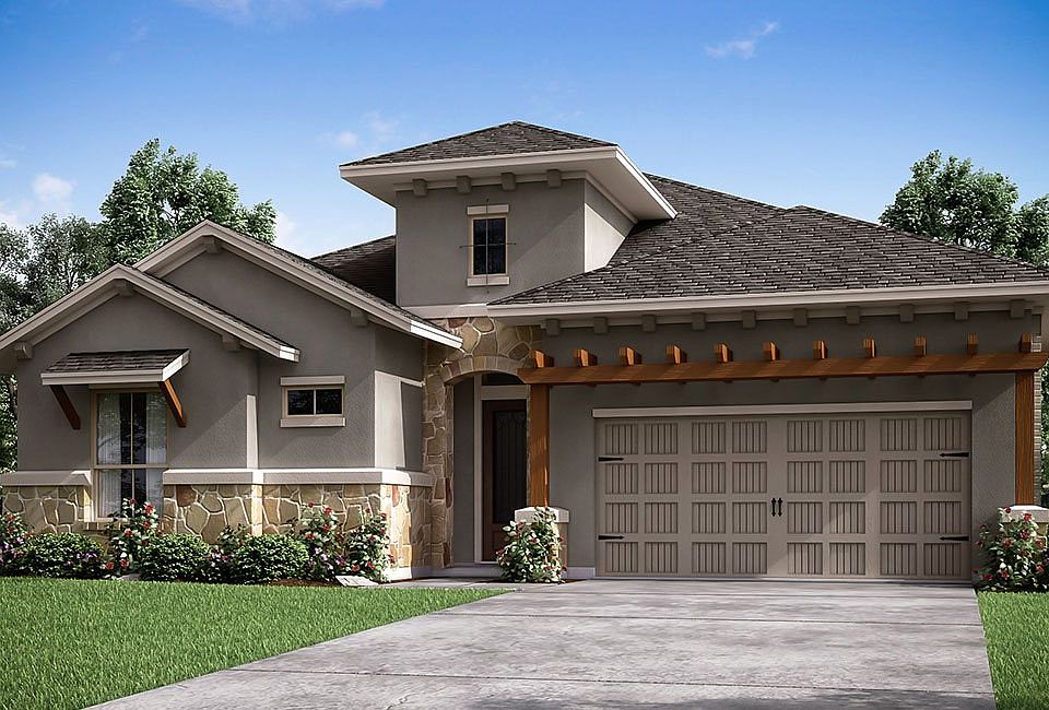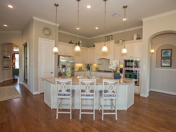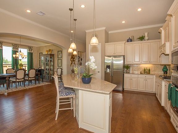 The gorgeous Palmer luxury patio home design by Village Builders features a dramatic long foyer at entry, a private study with the option to add lovely ceiling beams, a formal dining room with the option to add a wine refrigerator and dual built-ins at dining entry, a spacious great room with corner fireplace, a chef's island kitchen with walk-in pantry, and a covered rear patio. The beautiful master suite features an en suite bathroom with dual sinks, private toilet enclosure, separate tub and shower with seating, and a large double walk-in closet with access to an oversized utility room that includes a freezer space. Additional decked attic space is located above an attached two car garage.