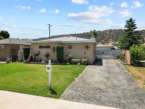 Residing on a sunny street in Pomona is a charming 1,418-sqft home! Inside, be greeted with a spacious entryway and formal seating room with glossy tile floors found throughout the common areas and elegant crown molding throughout. Into the step-down living room, the glossy flooring continues and is highlighted by all over large pictures windows while two overhead ceiling fans keep the space cool and comfortable. With a tray ceiling fitted with recessed lights, the bright kitchen glitters from the lovely granite countertops, mahogany toned cabinetry, and built-in stainless-steel appliances. Each bedroom includes built-in closet storage and is styled with beautiful blonde wood flooring, well-sized windows, and all over accent moldings while the primary bedroom is complete with a private attached bathroom. Outside, enjoy a spacious backyard with an open patio and a fragrant citrus tree that provides plentiful fruit and wonderful shade. The property includes a long driveway the leads back to the detach 2-car garage and has convenient accessibility from the sliding glass door of the living room. A great property that's nearby local establishments, parks and hiking trails, markets, schools, freeway access and more!