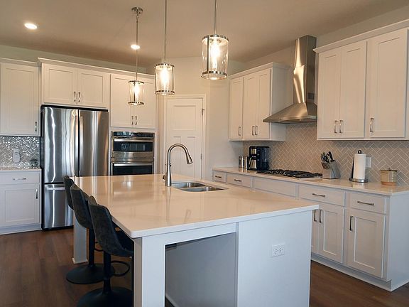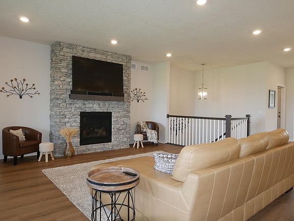 Only a relocation makes this near new home available! Main level living at its finest! Open kitchen with enameled cabinetry, large center island, quartz counters and stainless steel appliances. Spacious main floor family room with floor to ceiling stone gas fireplace. Gorgeous sunroom overlooking large maintenance free deck and city owned wetland (premium lot). Large main floor primary bedroom suite with private bath. Completely finished walkout lower level with huge recreation room, bedroom and three-quarter bath. Massive storage area as well. Must see all supplements and virtual tour!