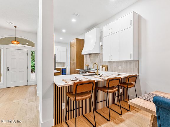 STEPS from the beach in the exclusive gated Oceanside community on Amelia Island! This fully updated home showcases custom designer finishes, including a gourmet kitchen with vaulted ceilings, slim shaker cabinetry, Calacatta Gold quartz countertops, and new stainless appliances. Wide-plank European White Oak flooring flows throughout the open layout. With 3 bedrooms, 2 baths, and a light-filled sunroom, the home blends comfort and sophistication. The primary suite is a true retreat with a spa-worthy bath featuring a freestanding tub and walk-in shower. Additional upgrades include a new AC system for peace of mind. Enjoy effortless living with HOA-covered lawn care, irrigation, and resort-style amenities—pool, tennis, and more. Evenings are spent among friendly neighbors or strolling to the Ritz-Carlton nearby. Whether a full-time residence or vacation escape, this home offers a rare opportunity to own luxury island living at its finest!