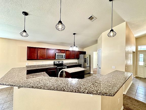 AVAILABLE TO SHOW STARTING 24 AUGUST 2025! 2167 S/F plan has many great features to include granite countertops, carpet in bedrooms, ceramic tile, in wet areas, rear covered porch (14'X19') This home features an open floor plan with a 3 sided bar off the kitchen that overlooks the family room and breakfast area. The bonus computer station area has a built in desk, drawers and cabinets. Pets approved by owner. No smoking, 650 Credit score $50.00 application fee.