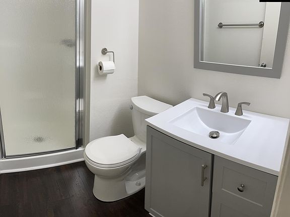 I have refurbished most of my unit with new laminate flooring in the living room, hall way, and three bedrooms. New vanity, mirror, toilet and shower door in master bedroom and new sink and plumbing fixtures in main bathroom. Master bedroom has a walk in closet. All bed rooms have lighted ceiling fans. Fresh paint throughout the unit. This unit has a patio with a retractable sun shade and closet. The living room has a vaulted ceiling with upper window for added light, gives a very roomy fill. This unit is in very good location on a quiet street next to the river bed and next to grocery stores, schools, restaurants and theaters.There is a gated pool and jacuzzi and side by side covered parking. I do not live on sight. This place is economical because the water, gas and trash is covered, you just have the electricity and the hot water and stove are gas. The keyed laundry room is very close about 60' away. I pay the HOAs. There is a typical HOAs rule book that must be followed and I will have some typical does and don'ts for the unit it self. Will also need to have rental insurance.