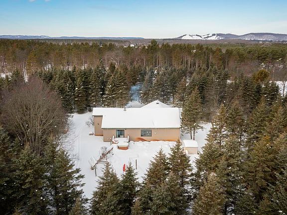 This custom 3-bed, 2-bath ranch home sits on 5 acres of woods and is adjacent to state land offering plenty of privacy. Inside you'll find beautiful hardwood floors throughout most of the home. Stay connected with the fiber internet and enjoy the cozy atmosphere of the gas stove in the living room while overlooking the sparkling in-ground 4-8-foot-deep saltwater pool in the irrigated backyard, perfect for summer get togethers! The spacious primary suite features dual walk-in closets, ensuite bath, and jetted bathtub. On the lower level you'll find ample storage, wood stove, tall ceilings and drywall, ready to be finished, and plumbed for an additional bath. Less than a 10-minute drive to both Crystal Mountain Resort and Iron Fish Distillery, this home is a perfect balance of peaceful country living and access to skiing, golfing and more.