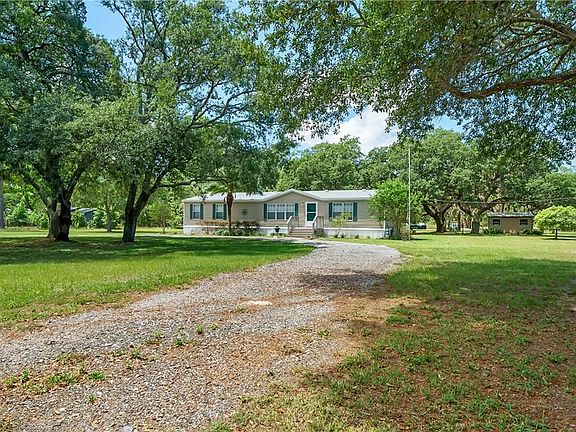 PRIVATE COUNTRY LIVING close to town! This beautiful 3/2 manufactured home is situated on 2.2 acres nestled under luscious scattered Grandfather Oaks, cedar camphor and palm trees. The kitchen is spacious with wood cabinets, double pantries and opens to the dining room and wet bar. Open floor plan with over-sized rooms with split bedroom architect for privacy, walk in closets, upgrade ceiling vents, and inside laundry room. Open the front door to your great room which boasts of 3-pane picture windows and stone wood burning fireplace with built in shelves, cathedral ceilings. Master bath has double sinks and soaker tub with separate shower. Step out back to the water gardens, waterfall and stone walkway surrounded with aquascape plants which brings peace of mind with a feel of shear tranquil serenity in a tropical atmosphere. Recline in the tree swing for moments of quiet time. Or, for the entertaining side of you, enjoy gatherings around the big open fire-pit with plenty of room out back for farm animals or yard games. This property is fully fenced with chain link, field fencing, 3 gates and a horseshoe driveway. 2 Sheds. Small dog kennel. Brand New Roof 2020! Home is on a paved dead-end road. May place a second dwelling. Zoned agriculture residential.