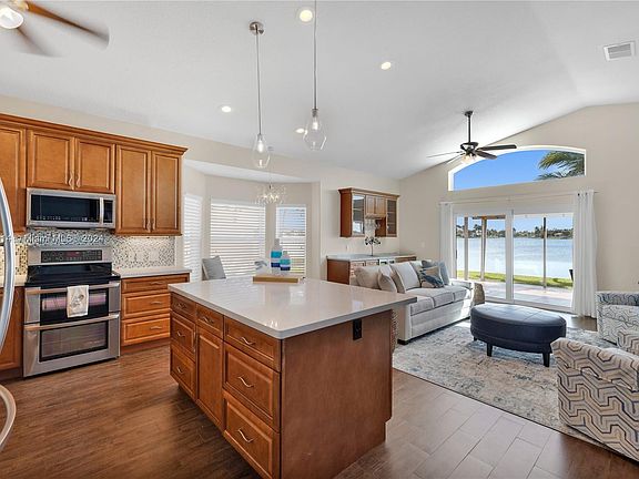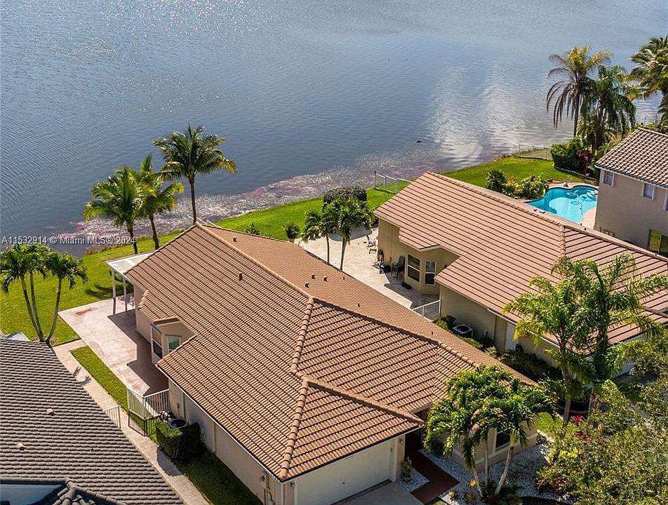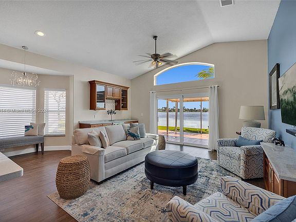 Keystone Lake Waterfront. Beautifully Redesigned, Open-Concept Copenhagen, Great Collaboration between Owner & the Architect to Showcase Expansive Lake View. The Sunsets are Gorgeous here! Meticulously Maintained, Light & Bright, Off Main Road. New Roof(20), Impact Windows/Sliders(19) & Door(20). Covered Patio, Coffee Station/Wine Cooler, Updated Bathrooms(20),Wood Plank Tile Throughout. Additional Features: Laundry Room, Breakfast Nook & Snack Bar, Large Island w/Quarts Countertops, Jetted Bathtub & Marble in Primary, Custom Closet, Exterior Soffit Lighting. Over $100K in Upgrades. Top Rated Schools. Manned-Gated Community, Low HOA Includes Cable/Internet. Minutes to I-75 Makes Connections to Sawgrass, Palmetto Expressway, I-595, Turnpike, I-95 & All of So Florida within Easy Reach.