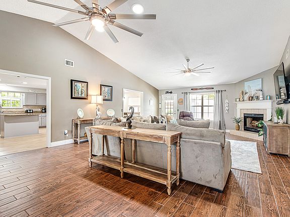 This pristine coastal retreat in West Navarre is near one of the Gulf's most beautiful beaches at Navarre Beach and also the Sound for Boating! No HOA fee. Rental ready and comes fully furnished. This low maintenance, one story beach home's outdoor living area boast a screen patio overlooking the oversized private pool with newish liner, fire pit sitting area, grilling station, and lounge chairs that's perfect for entertaining and all enclosed by a privacy fence. The welcoming front porch views parking for golf carts or a boat. Inside, there are 4 bedrooms, 3 baths in the well-designed layout making it ideal for a primary, secondary or rental home. The character of the home includes a dining/office/bonus or 5th BR, expansive kitchen, living area with FP. Has good short term rental history