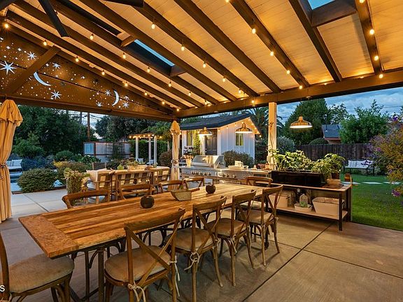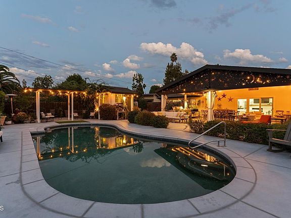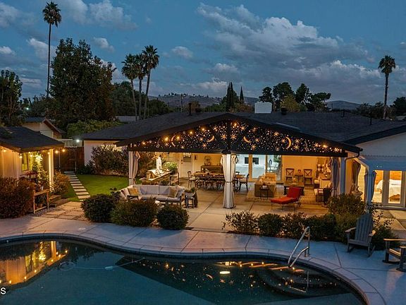 💎The Crown Jewel of Waverly Heights! 💎This completely remodeled, single -story pool home is set on an immense flat lot and offers over 2,600 square feet of refined living space with six bedrooms, five bathrooms, and dual RV accesses. The striking curb appeal features a half-circle driveway, updated fencing, manicured artificial turf, and a welcoming front patio with fire pit. Inside, real wood flooring leads to an open and bright layout centered around a stunning chef's kitchen with stone countertops, soft-close shaker cabinetry, farmhouse sink, subway-tile backsplash, and stainless steel KitchenAid appliances including a five-burner gas range. The spacious family room features a brick fireplace and large sliding doors to the backyard. Two private wings each include a primary suite, hall bath, and two secondary bedrooms, offering the perfect setup for multi-generational living or guests. The new south-wing primary suite is exceptional with vaulted ceilings, French doors to a private patio, a luxurious bathroom with dual quartzite vanities, soaking tub, stone-tiled shower, and custom walk-in closet.Nearly $100,000 worth of upgrades include a new HVAC system and tankless water heater, smart water monitor and quake shutoff valve, new drainage and irrigation systems, electrical and structural enhancements, and a Vivint security system. The backyard is a true retreat with a massive covered patio, built-in BBQ with stainless appliances and farmhouse sink, a pebble-surfaced pool, a private outdoor bath house with vaulted ceilings and full shower, and expansive grounds with room for an ADU / Guest House or sport court. Both side yards offer RV access, one with a paved pad and sewer hookup. Ideally located near Wildwood Park's hiking and biking trails, playgrounds, and convenient freeway access, this home is the definition of turnkey Thousand Oaks luxury.