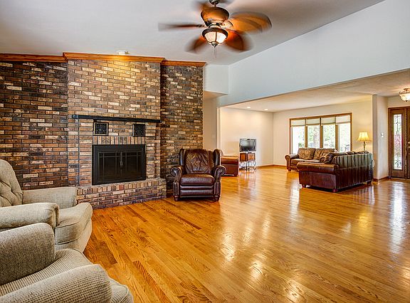 Gorgeous all brick 4 bedroom, 2.5 bath RANCH with full finished basement. Main level features an open concept with hardwood floors throughout the entire first floor. There are 3 bedrooms and 1.5 baths on the main level. Updated kitchen with granite counter-tops, stainless steel appliances, pantry and a breakfast bar. Family room has a full wall brick fireplace with heatalator, vaulted ceiling, designer ceiling fan, and a bay window with blinds built in overlooking a huge park-like backyard. All bathrooms are beautifully updated. Huge family room with full wall fireplace in the fully finished basement with 1 bedroom, a full bath, laundry room, and bonus room that can be used as an Office or 5th bedroom. Large fenced in backyard with a deck great for outdoor entertaining. 2 1/2 car garage. This home is equipped with F.A.S.T Septic System. This is a Must See Home!