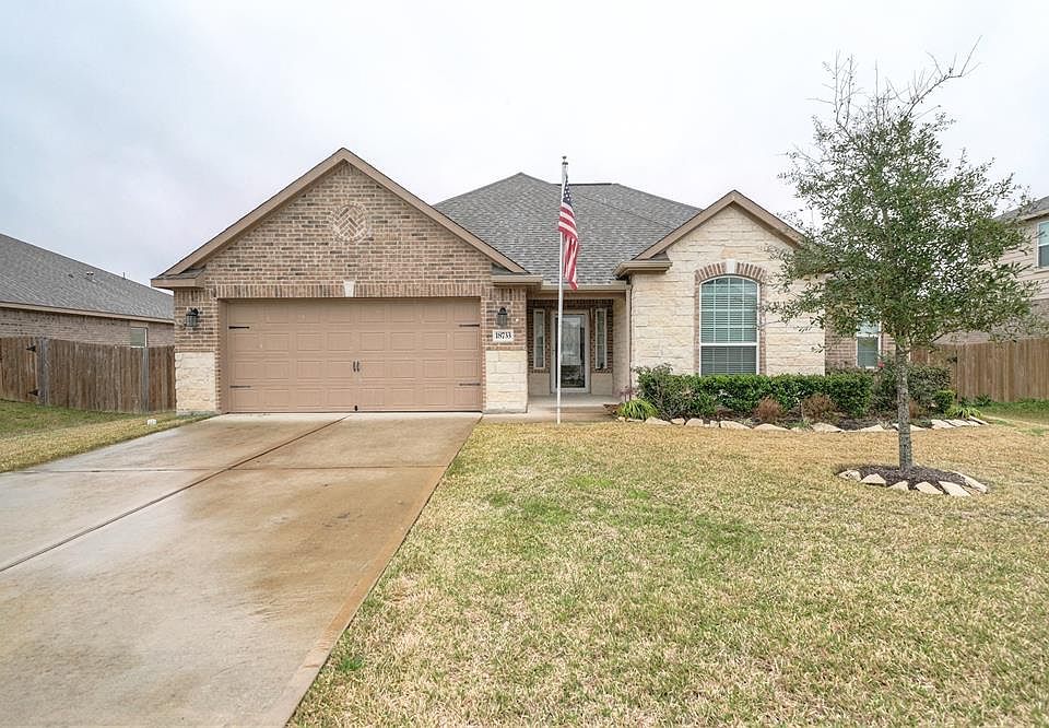 The pictures are accurate! Look for the Flag Pole. God Bless America! Located on a private cul-de-sac street, this 3 bedroom, 2 bath. 2 car garage one-story home is like-new. The outside of this home includes a beautiful stone and brick exterior in front with a large covered back porch overlooking the spacious yard in the back. Inside features include impressive granite kitchen countertops with rich dark stained cabinetry and all stainless steel appliances - including the refrigerator. The master bath comes complete with a double sink vanity along with a shower and separate tub. No carpet. All wood laminate flooring and tile in kitchen, baths and utility room. Oil-rubbed bronze fixtures and hardware complete this home. Schedule your showing TODAY!