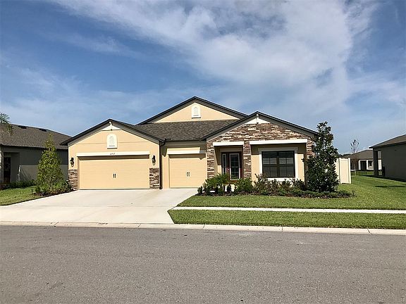 Fantastic 4 bedroom, 3 bathroom, 3 car garage home featuring a TRIPLE SPLIT PLAN with OPEN CONCEPT kitchen, living room and dedicated dining area. The STUNNING kitchen includes several upgrades, such as BEAUTIFUL QUARTZ COUNTERS, 42 inch staggered cabinets, back splash, STAINLESS STEEL APPLIANCES (including a NEVER USED dishwasher),UNDER CABINET LIGHTING, and additional RECESSED LIGHTING. This home also boasts an UPGRADED front door, 5 1/4 inch baseboards, CROWN MOLDING, CUSTOM CEILING FANS, INDOOR LAUNDRY, upgraded STONE COUNTERS throughout, and UPGRADED FRAMED WALL. Step in to the SCREENED LANAI to appreciate the SERENE POND VIEW from the FULLY FENCED backyard. Schedule your showing on this amazing home at a fantastic price today!