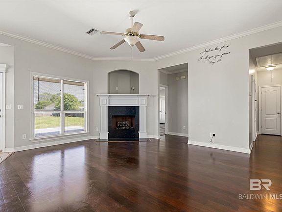 Great 3 BR/2 BA home close to everything Fairhope has to offer in beautiful Colony Place. Open floor plan with gorgeous living room, fireplace, and hardwood flooring. The Kitchen features stainless appliances with updated lighting, breakfast bar, dining area and custom cabinetry. Primary Suite features a soaking tub and separate, oversized shower, double sinks, and vanity. Two additional BRs and Bath complete the picture. Laundry Room includes a wash sink and built in shelving. Step onto your partially covered patio and enjoy a large, fenced in yard. The attached, 2 Car Garage is oversized with plenty of storage space. The home was recently painted with updated LVP flooring in all bedrooms. There is no carpet. Per homeowner, HVAC & Water Heater are 1 Year old. Directly across from Founder's Park and overlooking the Ballfields, Colony Place is convenient to restaurants, shopping and downtown Fairhope. Call for a showing today! Buyer to verify all information during due diligence.