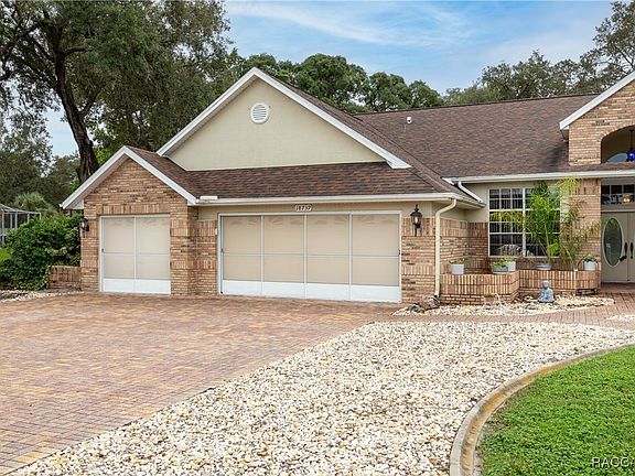 Make sure to check out the Virtual Tour for a 3D Model w/ Walkthrough, Floor Plan w/ Measurements, Video, & more! 18739 Bascomb Lane offers more than just square footage, it's a home that knows how to live large and entertain with ease. Inside its 2,527 square feet (with a whopping 3,661 square feet under roof), on .59 acres, you'll find this home has a thoughtful layout that gives everyone room to breathe with 4 Bedrooms, 3 bathrooms, a 3-car screened garage. From the moment you arrive, the wide brick-paver driveway sets the tone, framed by mature trees and a well-kept landscape that makes the exterior shine. The home's blend of brick and stucco, arched windows, and thoughtful details create curb appeal that feels both elegant and inviting. Inside, soaring ceilings and large windows flood the home with natural light. A generous kitchen anchors the heart of the home, complete with ample cabinetry, sprawling Corian counters, and a breakfast bar that opens to the family room and casual dining area. A separate formal dining room and living room provide plenty of options for entertaining or cozying up to the fireplace to read your favorite book. This Master Suite is a show stopper, with a sitting area, and private access to the patio, it has the 1st wing of the home all to itself. Making your way to your master bathroom with dual walk-in closets, a spa-style bath with soaking tub and walk-in shower, dual vanities to spread out. You will find 2 generous sized bedrooms and 1 bathroom in Wing 2, and the 4th Bedroom and bathroom across the hall (with back porch access) in the 3rd Wing. Step outside, and the back of the home opens to an expansive L-shaped screened patio with 5 separate access doors, including one from a bathroom for convenience. With ceiling fans, a wet bar, and room for both dining and lounging, it's an outdoor living space ready for morning coffee, evening gatherings, or simply watching the sandhill cranes wander by. Life in Autumn Oaks is about more than just your home, it's about the community. Wide, tree-lined streets w/ sidewalks make walking or biking a pleasure, while the active HOA keeps the neighborhood lively with regular events. Amenities include bocce, pickleball, basketball, a playground, grilling area w/ restrooms.... with all these amenities, you can't help but become friends with neighbors. All with No CDD, No Flood Insurance Required, and a super low HOA at only 35.83/month! When it's time to explore beyond your neighborhood, you're just 15 minutes to Hudson Beach for waterfront dining and sunsets, 20 minutes from Weeki Wachee Springs for kayaking and mermaids, and under an hour from Tampa International Airport. Daily shopping, dining, and family-run businesses are close by, adding a welcoming small-town feel with big town conveniences. Homes like this one don't last long, set up your showing today!