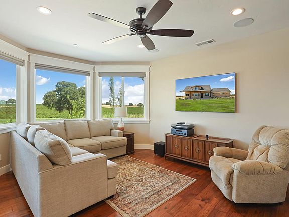 Discover your dream home in this hilltop 3-bedroom, 3-1/2-bathroom 2022 build. The views of the rolling vineyards are incredible. Nestled on a sprawling 30-acre chardonnay vineyard dotted with beautiful oak trees, this property perfectly blends modern comfort with a tranquil rural atmosphere. Located just minutes from local amenities, it offers the peaceful charm of vineyard country with the convenience of nearby services. The home features a freshly landscaped front yard, welcoming you with curb appeal and elegance. The backyard is a blank canvas, ready for your imagination to create the outdoor oasis of your dreams enjoying the hilltop sunsets. Think lush gardens, a cozy patio, or even a private vineyard extension. Inside, the well-designed layout with 3 suite bedrooms, modern finishes, and abundant natural light, perfect for both relaxation and entertaining.