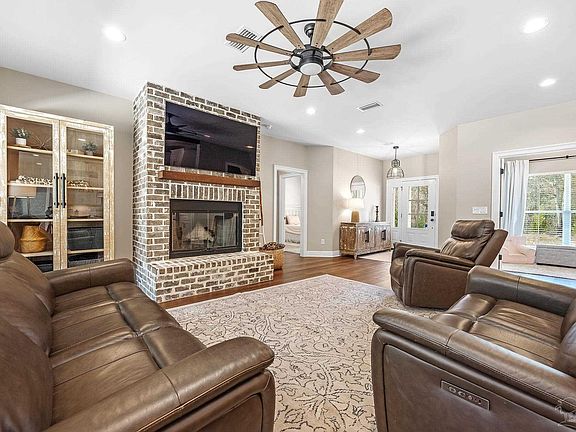 We have a clean home inspection from previous contract....Nestled on a sprawling 9+ acre corner lot, this beautiful 3 bedroom, 2.5 bath home offers a peaceful retreat with modern amenities and plenty of space to roam. With a gated entrance, this property provides both privacy and security. Built in 2018, the home features a bright, open-concept design with an abundance of windows that flood the space with natural light. The heart of the home is the spacious kitchen, complete with a large island and breakfast bar, stunning quartz countertops, a farmhouse sink, and a large walk-in pantry. The adjoining dining nook offers a cozy spot for family meals, while the open living area provides a seamless flow for entertaining. The primary bedroom is a private sanctuary, tucked away on one side of the home with French doors leading directly to the backyard. The en-suite bathroom is equally impressive, offering double vanities, a water closet, a large standing shower, a garden tub, and a spacious walk-in closet. On the opposite side of the home, you'll find two additional bedrooms and a full bathroom, as well as an office space that can easily serve as a home office, study, or flex room. Step outside into the backyard, and you’ll be surrounded by mature live oaks, providing shade and beauty, along with a charming tree house that’s perfect for kids or just enjoying nature from above. The outdoor space includes a covered open patio for relaxing or entertaining, as well as a screened-in patio. Beyond the house, the property offers even more versatility with a large metal building that’s perfect for storing a boat or RV, as well as a 2-car garage and an oversized utility room. This home offers the perfect blend of modern living, ample space, and serene country surroundings—don’t miss your chance to own this exceptional property!