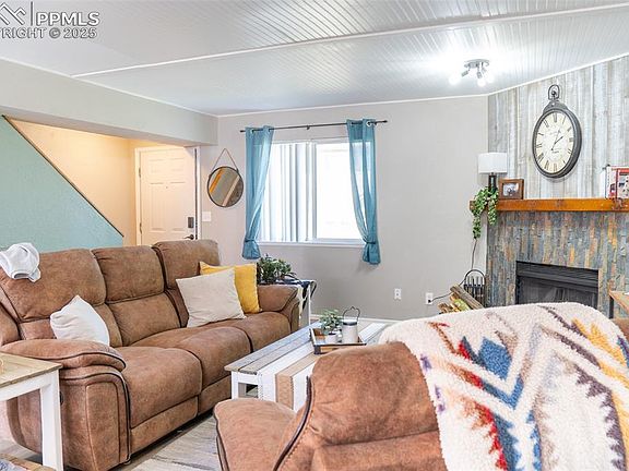 Welcome home to this tastefully updated townhome with private, fenced back patio. As you enter the front door you will notice a secure screen door to allow the cool Colorado breezes in. The wood burning fireplace is the perfect place to cuddle up on a cool evening and keeps the home warm and cozy. Tucked under the stairs you will find a fun & unique, built in dog kennel or storage space. The open concept kitchen is perfect for entertaining with a large breakfast bar, all SS appliances, beautiful butcher countertops & room for a table and chairs. There is a convenient, nicely decorated half bath for your guests. There flooring is newer throughout the home. Upstairs you will find 3 decent sized bedrooms and a full bath. The bath has been updated to include a Bluetooth speaker. The back patio is located off the kitchen to provide easy access for those family BBQs and a great space for your pups & yourselves to enjoy the outdoors. The Eastridge Townhomes is a very well maintained complex with nice landscaping and green grass to enjoy. This home is close to several military bases, restaurants, theaters, dog parks, golf courses and more. Don't wait to see this affordable and adorable townhome.