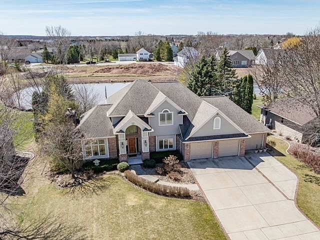 Nearly 3,200 sq ft in prime Ledgeview location. Walking distance to schools, parks, shopping & The Trail! Enjoy the dreamy summer nights from your secluded panoramic deck w/views of the pond in your backyard! Property fts extensive updates throughout & is in pristine condition. New roof-2025, chef's kitchen w/Wolf gas range, Sub Zero refrig, walk-in pantry. Main level features quarter sawn maple HW flrs, 2 story volume great rm w/wall of bookshelves, WB FP, custom mantle, kit dinette/nook w/butlers station/wet bar, mud rm/1st flr laundry, primary suite w/walk-in tile shower, soaking tub, walk-in closet. Welcoming foyer w/volume staircase entry, 1st flr formal dining, heated 3 car garage, instant hot water system/tankless, finished LL fam rm, built-in office, 4th bdrm/exercise rm, full bath