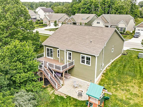 SPECTACULAR 3 Bedroom/3 Full Bath ranch home w/spacious walk-out lower level (LL), offers over 2,000 sq ft of stunning living space & abundant storage! BUILT IN 2021, this almost new home is packed with modern amenities & numerous upgrades. Features include a 1st floor Primary Suite, 1st floor Laundry, open floor plan, gas fireplace & Kitchen with 42'' cabinets, granite countertops, island w/seating & storage, ss appliances...The expansive LL offers additional living space & Full Bath + 2 storage areas. Enjoy the beautiful views from the low-maintenance composite deck (2022) or the paver patio (2022) accessed from the walk-out LL. This beautiful lot backs to woods & offers a view of the HOA pond. See provided Property Features sheet for more details! ABSOLUTELY MAGNIFICENT & A MUST SEE!