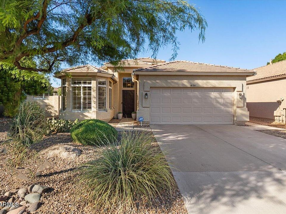 This beautifully maintained home is move-in ready, in a great Chandler location near restaurants, shopping & employment. Open floor plan with updated kitchen, stainless steel appliances, bay window dining nook. Spacious primary bedroom with ensuite, walk-in closet plus secondary closet for all the extras. North/south facing exposure, you will love the backyard covered patio with extended travertine pavers, artificial turf, & lush shrubs for extra privacy. *Roof replacement including tiles & underlayment in 2015*, *Kitchen updates in 2025*, *New Carpet in the bedrooms 2025*, *Updated woodplank tile flooring in 2015* *HVAC 2019* *Wood shutters* Refrigerator, washer & dryer convey. Welcome home!