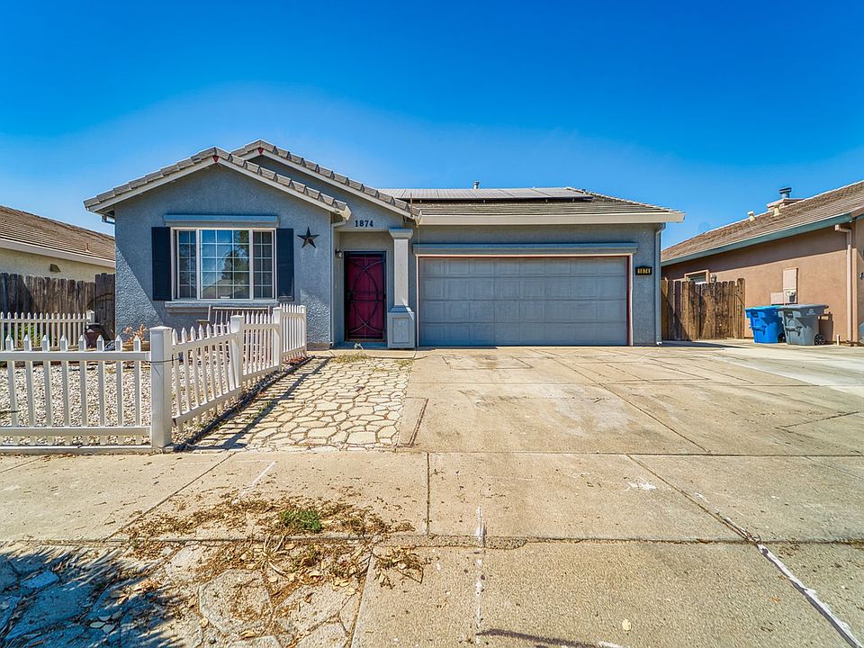 This beautiful 3-bedroom, 2-bathroom home, built in 2004, offers 1,542 square feet of comfortable living space. Step inside to find an inviting open layout featuring an island bar with 4 stools, perfect for entertaining. The kitchen comes fully equipped with all white appliances, including a refrigerator, electric stove, and an extra refrigerator in the garage.