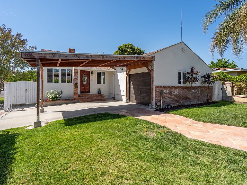 A breathtaking Reseda pool home featured in a prime location! This property is nestled on a large corner lot! This is a beautiful 3-bedorom, 2-bathroom home that is move-in ready! Upon entering the home, you are greeted with a welcoming living room with a fireplace, laminate flooring, and recessed lighting. The home has a cozy dining area, along with a Galley kitchen where you will find granite countertops, beautifully crafted cabinets, stainless steel appliances and a nice decorative mosaic backsplash. There are 3 bedrooms, one of which has a sliding door that opens to the patio. The primary bedroom is spacious and has its own bathroom equipped with 2 separated double sink vanities. Garage is converted into a fabulous bonus space that can be used for a work studio, an at home office or for extra storage space. The property has an attached 2-car covered carport for parking. The perfect entertainers yard! The backyard features a secured pool, a massive open patio that is perfect for hosting get-togethers, plus a lush green lawn that is great for kids or pets. The yard is the ideal place you will want to spend your weekends at home! Located near Reseda Park, CVS, the USPS, markets, Salsa & Beer, Lake Balboa, banks, schools and so much more! Minutes from the 101-Freeways. Welcome home!
